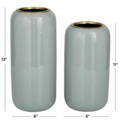 The elegant and minimalist design of this gray, cream, blue, red, yellow, or green round cylindrical decorative vase set makes it an instant conversation piece and a gorgeous accent decor for your home. This vase is perfect for displaying orbs filler and twigs, as well as filling up any negative space against an open surface space. Create depth and form onto your space by displaying this beautifully crafted vase.. This item comes shipped in one carton. Suitable for indoor use only. Traditional Style. This items comes as a set of 2.