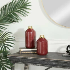 - A set of 2 vases that flaunts a soothing cream, red, blue, or yellow color that gives character to any interior and furnishing