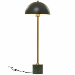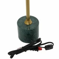 This eye catching lamp makes a playful addition to your surface space and beautifully illuminate its surrounding area. A black and green marble table lamp with accents of gold brings charm and a modern appeal to any room for an instant decor upgrade. Designed with rubber stopper at the base that prevent scratching furniture and table tops, as well as sliding around. Comes with 1 socket for medium-sized E26 bulb, Type A. Bulb included. This item ships in 1 carton. The cord is approximately 60 inches long. Suitable for indoor use only. Furnished with a metal dome shade. Comes with an on/off toggle switch. Marble is a product of nature and no two pieces are exactly alike. It is prone to variations in color and/or patterns in the material that add to the beauty and charm of the piece.. Contemporary style.