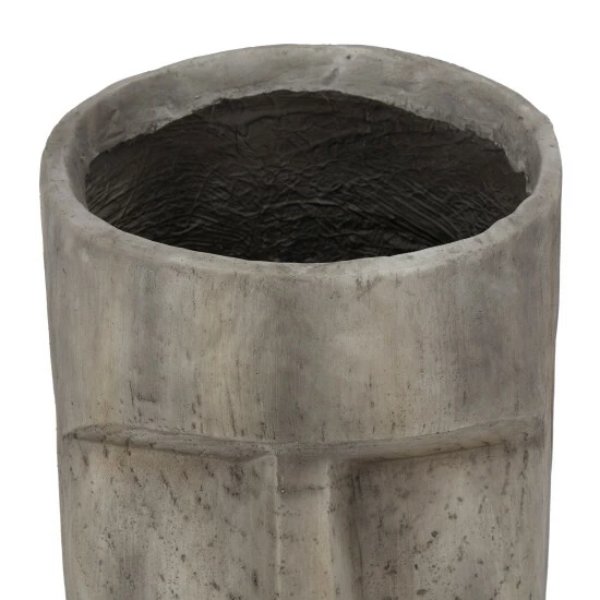 - A carved out face with deep-set eyes and thin lips feature this garden planter
