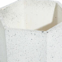 Create a chic and e-co friendly home by Incorporating some greenery in your living space, this white/grey marble textured fiber clay set of two hexagonal planters will help you achieve this goal. The fiber clay construction of this planter means toughness without sacrificing beauty and elegance thanks to its hexagonal geometric structure. The entire piece rests on a wooden tripod leg design with circular wooden legs in a light brown hue. This geometric planter set will bring a much-needed freshness into any living space, it will also help add depth and balance any space in your home. Recommended for use with indoor plants that do not require much water or sunlight, since there is no drainage hole. This item ships in one carton.