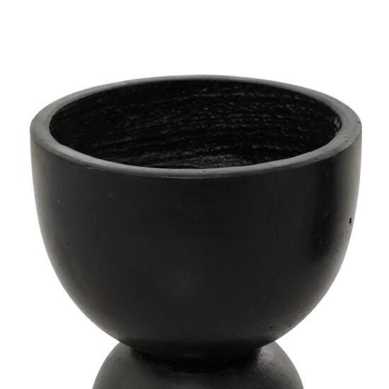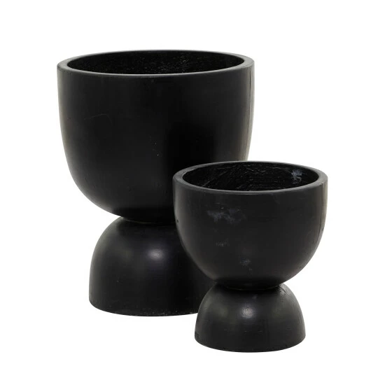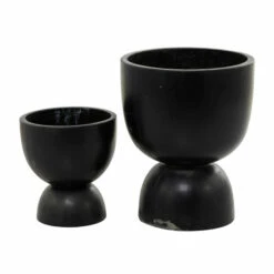 - Modern decorative planters featuring a black, white, grey, blue, or red finish and hourglass bodies with deep setting and large mouth opening