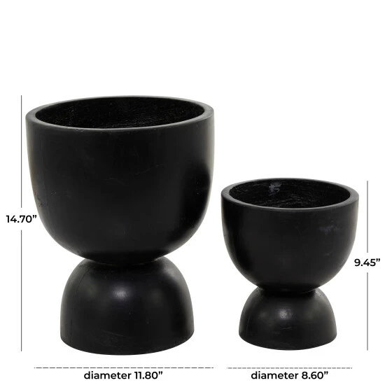 Display these modern black, white, grey, blue, or red ceramic planters for sophisticated style to your living space by displaying your favorite plants and floral arrangements. This item features a wide and deep setting pot with simplistic structure making it a staple and chic addition in any space. Enhance the mood and the look of your room with some plants in these beautifully designed planter. Items come shipped in one carton. Suitable for indoor and outdoor use only. Planters do not have drainage holes. A set that comes with 2 black, white, grey, blue, or red ceramic planters. Modern Theme.