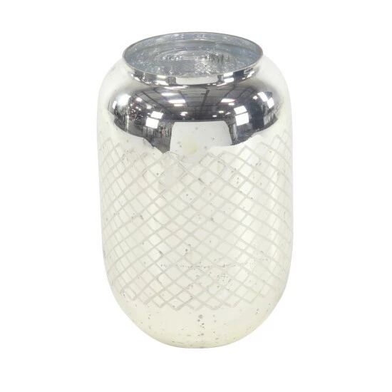 Elevate the look of your candle display with this candle holder. Crafted from glass, this decorative piece features a jar-shaped shade with crisscross designs and round opening and bottom. It flaunts a textured silver finishing that lends elegance to your space. Complementing most modern-themed settings, this candle holder will surely leave your guests impressed. Bring this stunning piece home today for a price you will simply love!