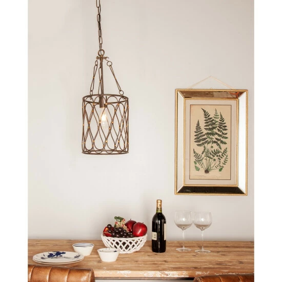 Illuminate your home interior with this metal chandelier from Studio 350! This elegant piece features a brown and gold-finished round frame with infinity patterns on the body that brings out its style and class. It also includes a light bulb mount for a traditional look. This chandelier is crafted from 100% iron material that guarantees a long-lasting quality even when exposed to rough conditions. It is also designed with an iron rod for safe and easy installation. Make your homes even brighter by hanging this metal chandelier today!