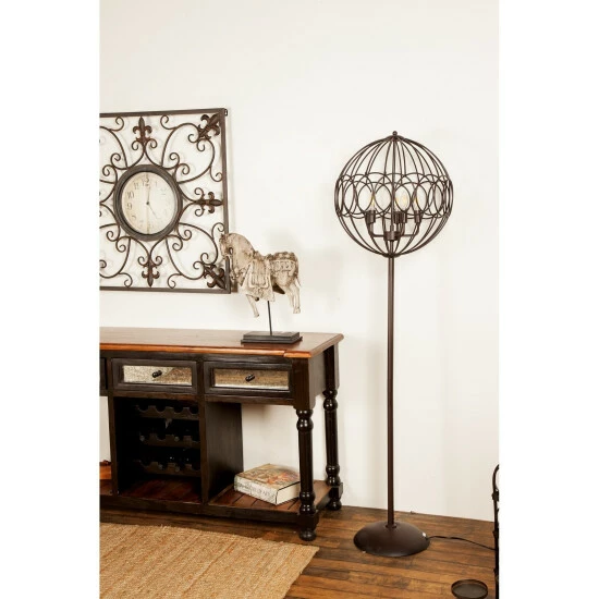 Put a spark in your lovely abode with this metal floor lamp from Studio 350! Featuring a round cage-inspired shade adorned with overlapping circular patterns, this exquisite piece is a great addition to your modern-themed settings. It also features a three-light bulb mount for a traditional look. The smooth brown finish brings out the style of this floor lamp. It is made of 100% iron material that guarantees a long-lasting quality even when exposed to rough conditions. Place this floor lamp in room corners or alongside end tables to accentuate your interior. Get yours now and make your homes even brighter today!