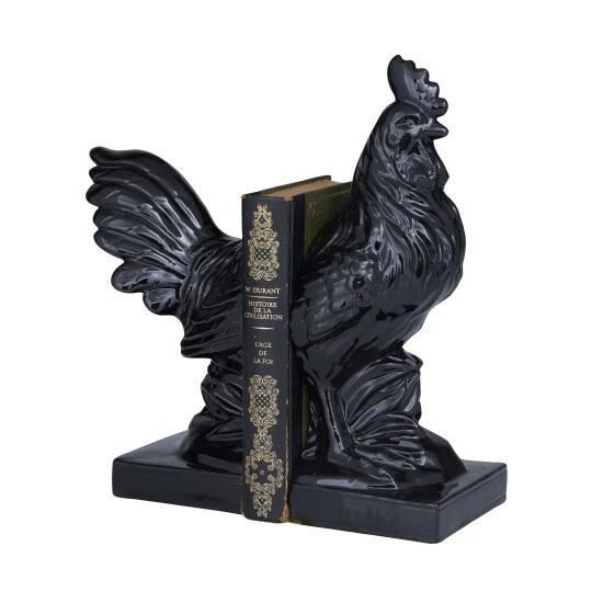 Style up your wall shelves, study desks, and splendid bookcases with the addition of this endearing rooster bookend display. Keep your books and magazine organize with this sturdy and elegant bookends. Give your bookshelf, office, night table or coffee table a little love with this bookend set. This item is shipped in one carton. Dolomite is molded and glazed to form a ravishing rooster bookend design. Suitable for indoor use. This bookend comes in pairs of 2. Modern Farmhouse style. This rooster bookend pair features FARM and FRESH texts at their bottom bases.