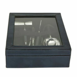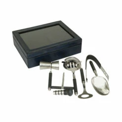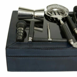 - This bartender toolbox crafted of solid and quality stainless steel, genuine leather, wood, fabric, and glass