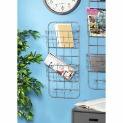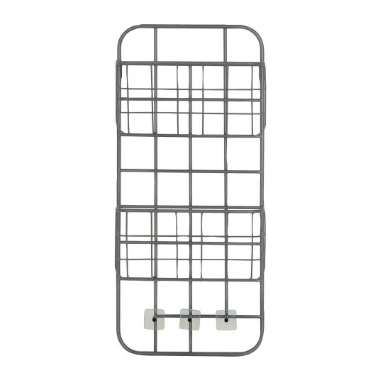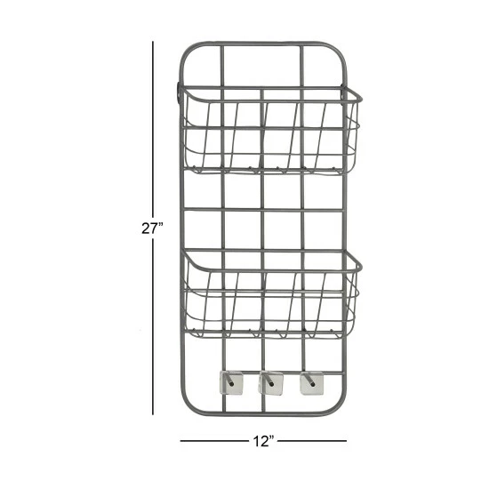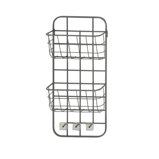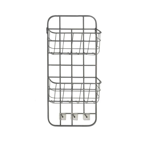 Save valuable space while adding storage area with this 2-tier basket wall rack from Studio 350. This rectangular wall rack made from iron and acrylic features a gray finish that adds a posh aura to your space. With three hooks that allow you to hang clothing apparel and other items, this easy-to-hang basket wall rack suits a any setting with limited space. Get this wall rack today for a stylish and convenient organizing and storage option.