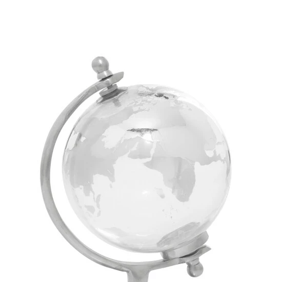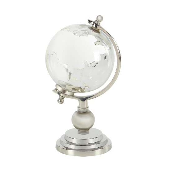 - This accent piece is made of glass orb with aluminum world map, axis, and base