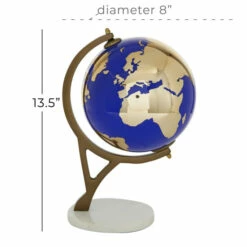 - This ceramic and aluminum decorative globe highlights blue and gold finishes that add personality and charm to your room