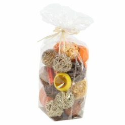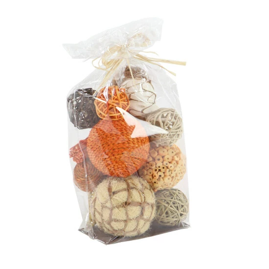 Decorate with these dried deco bags to add colorful vibes in your coastal style inspired home in bowls in the living room, trays in the kitchen or on transparent vases in your home office. Add color and textured to any vase or decorative bowls with these fillers to enhance your living space. Make a statement with this unique decor on mantle, console table or in any living space. This item comes shipped in one carton. Comes in clear plastic bags with ribbons on top. Due to the handmade nature of this item, no two will be alike, there will be slight differences in shape, size, and color. Suitable for indoor use only. Made in India. These decorative orb bags come as a set of 2. Coastal theme.