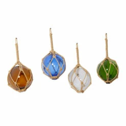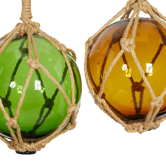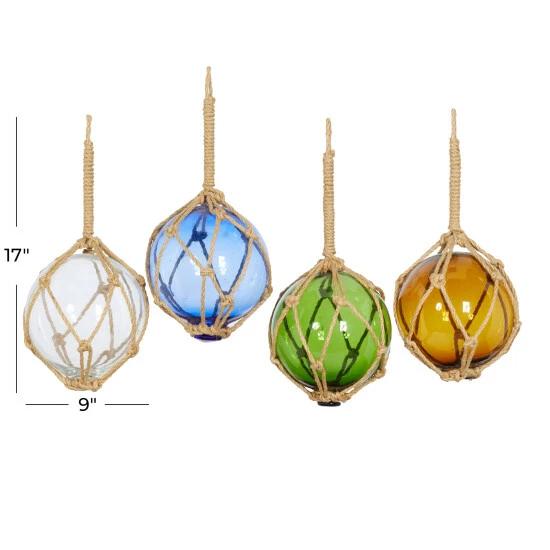 Test your resourcefulness and creativity in home decorating with this rope hanging display carrying 4 glass balls. Loop at the top can hang on furniture, ceiling, or wall. Add some color to your solid background wall space with these decorative sculpture. Features hollow glass balls with jute weaving pattern. Suitable for indoor use only. Measurements: 19″ x 33″ in diameters and weighs 4 lbs. This set includes 4 wall Decor. Items feature knotted jute rope for easy hanging. Items feature knotted jute rope for easy hanging. This item comes shipped in one carton.