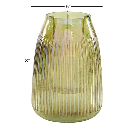 - This glass candle holder features a vase-shaped body with vertical line glass carvings