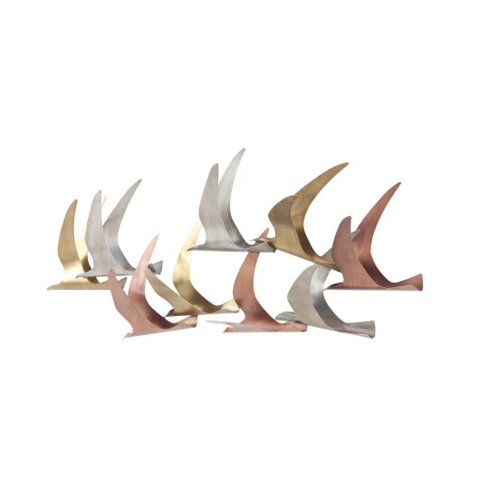Add dimension and style to your home with this birds-in-flight wall sculpture from Studio 350. Crafted from 100% iron, this wall decor features nine flying birds in a neutral color combination of gold, beige and brown. Its simple yet elegant design will easily stylize your wall space. Use this unique wall design to uplift any of your home decors. Get this artistic wall sculpture at a price you will simply love!