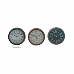 - Each clock measures 9 inches round x 3 inches thick