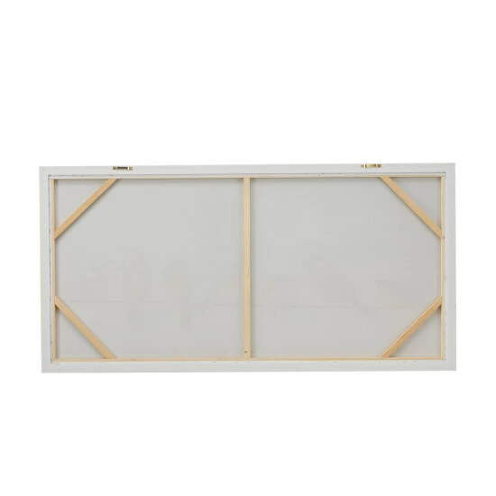 - A framed canvas art crafted of solid wood, polystone, and canvas materials