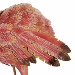 - Flamingo sculptures feature realistic feather shapes and color, statues have attached metal stands
