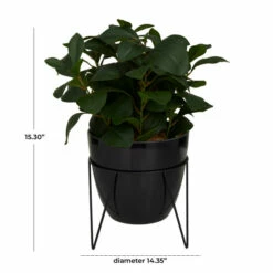 - An artificial plant that comes in realistic green round leaves on a black or white circular container and black tripod stand