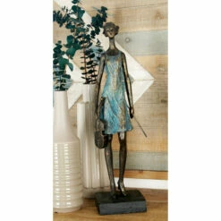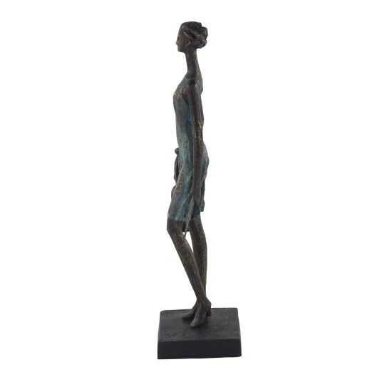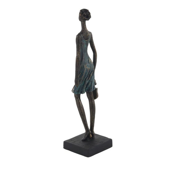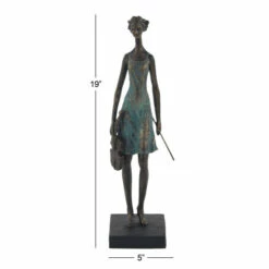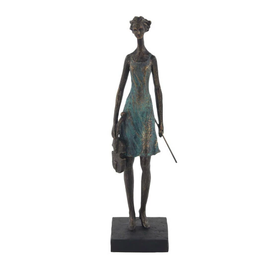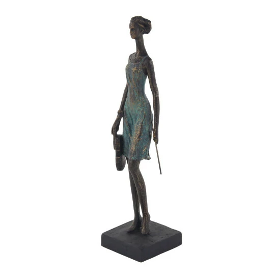 Represent the beauty and elegance of an accomplished woman with the Lamartine polystone violinist sculpture. Finished with a distressed brass with turquoise highlights, this statue is an elegant depiction of femininity.