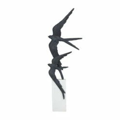 - Our gold or black bird polystone sculpture showcases two wide winged birds flying vertically beside each other and is accentuated by a black or white rectangular brick base stand