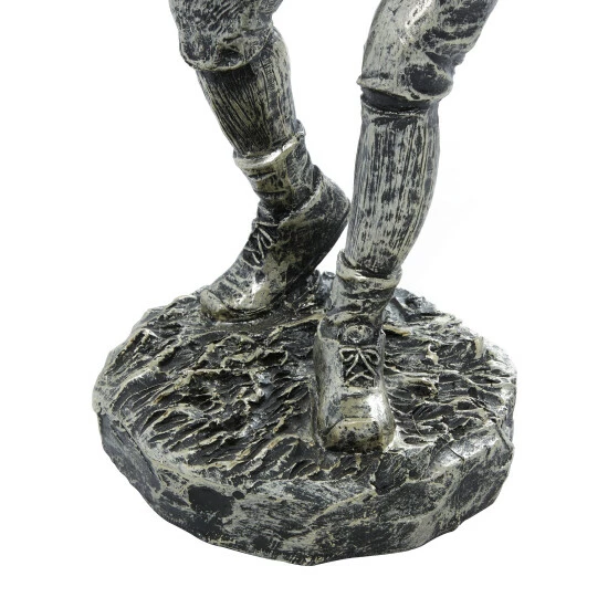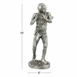 Give your favorite ball player or quarterback this silver stone football player figurine, featuring a quarterback about to throw the ball. The polystone material is made from powdered stone and resin for a highly malleable form to get all the details of this football decor. The detailed statue depicts a male player with his helmet on, a jersey with a number 32, and posing in the stance with the football about to throw across the field. Designed with black rubber stoppers at the base that prevent scratching furniture and table tops, as well as sliding around. This item is shipped in one carton. Suitable for indoor use only. Traditional theme. Polystone sculpture makes a great gift for any occasion.