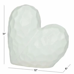 Create a glamorous tabletop display with this beautifully sculpted porcelain heart decor and pair it up with decorative candles and white toned furniture pieces. Create a balance surface space and added dimensions with this beautifully crafted sculpture. An artistic display to showcase your personality and enhance the look of any open table top space. Glam style. Suitable for indoor use. This item is shipped in one carton. Porcelain sculpture makes a great gift for any occasion.