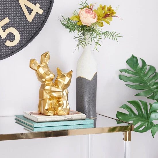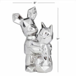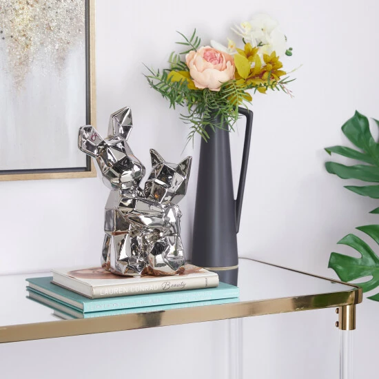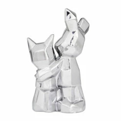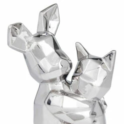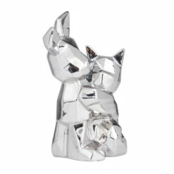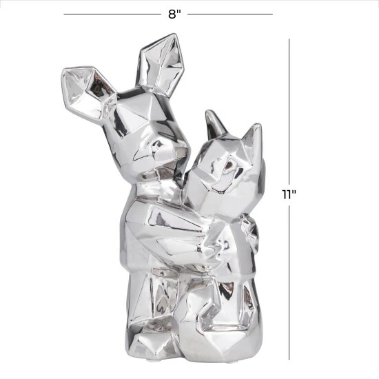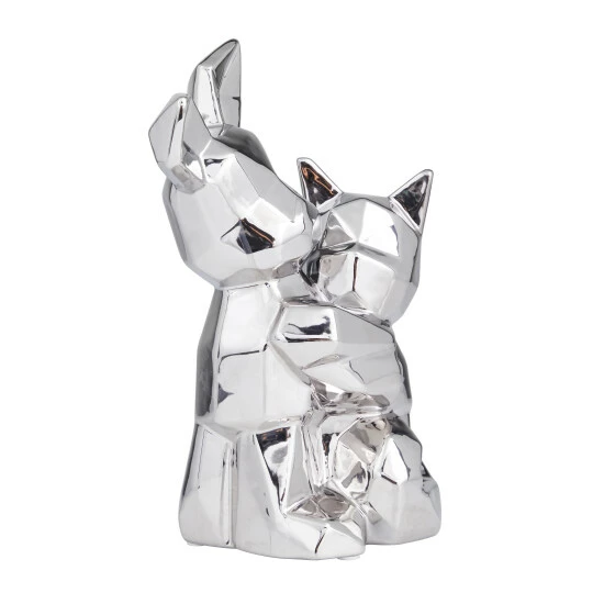 - This geometric animal sculpture highlights a high gloss metallic gold/silver finish with defined geometric edges for a polished look