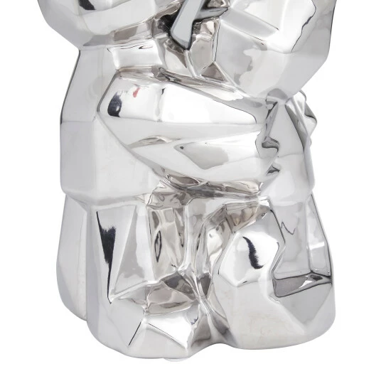 Give your corners and spaces a chic statement piece with this golden/silver geometric sculpture as center or accent piece on your tables. This item will elevate any living space and bring some dimensions and texture to your surface space. An artistic display to showcase your personality and enhance the look in any room. Designed with white rubber stoppers at the base that prevent scratching furniture and table tops, as well as sliding around. This item comes shipped in one carton. Ceramic is molded and polished to form this geometric patterned sculpture. Suitable for indoor use only. Glam design.