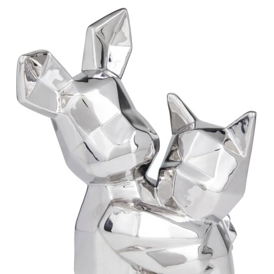- Dominating geometric details flaunt this hugging cat and dog sculpture that adds an abstract and mod effect to this display piece