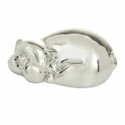 - This animal sculpture highlights a high gloss metallic silver/gold finish