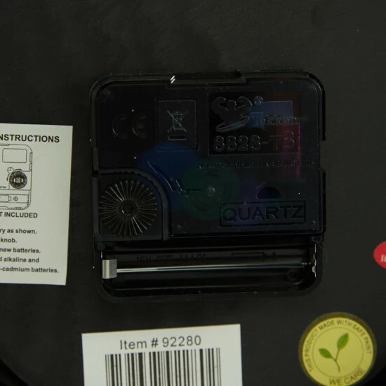- Distressed aqua blue finish and distressed brick red finish, both with white clock faces and black numerals and hands with a bicycle illustrations and “Bicycle” script in center