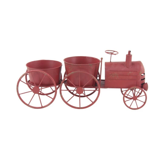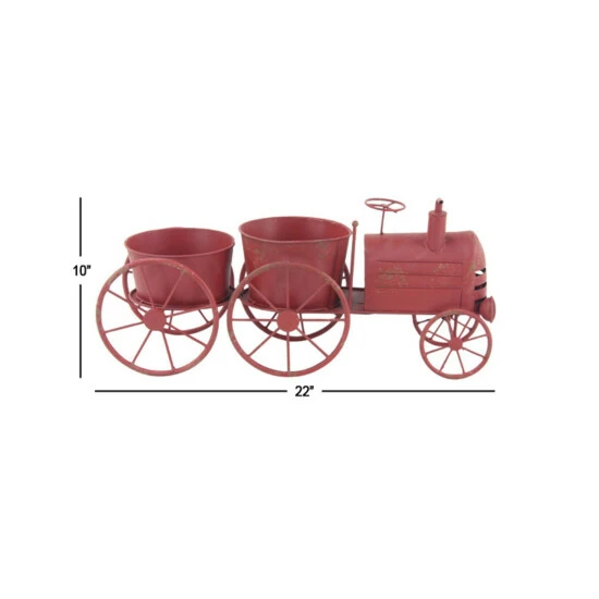 - The decorative construction features realistic parts of the mobile: wheels and puller. It also has 2 round planters at the coach section