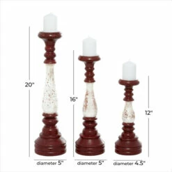 The best way to maximize your wall space and add some personality to living space. Their unique vintage color makes them a focal point decor for the living room & the master’s bedroom. Each set contains 3 candle holders, candles not included. Each pillar candle holder can accommodate 1 votive candle. This item comes shipped in 1 carton. Suitable for indoor use only. Made in Indonesia. Each set contains 3 candle holders, candles not included. Farmhouse-themed style.