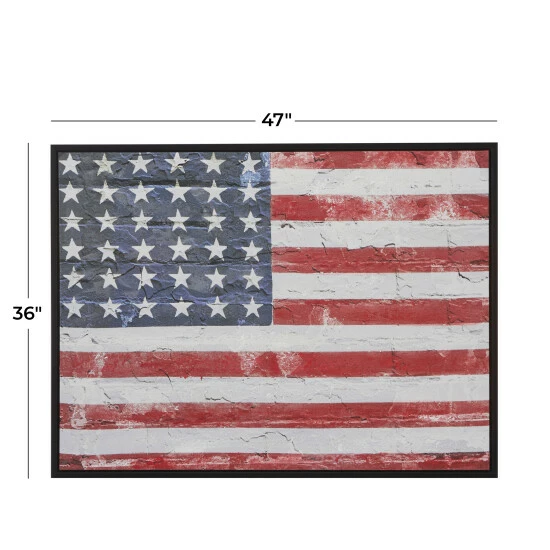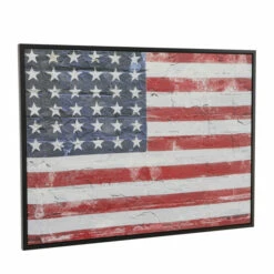 Showcase your patriotism and love for the stars and strips with this American flag wall art. Place this on any blank wall space adding both texture and depth to your home. Maximize your open wall space with this patriotic wall décor. Item comes shipped in one carton. Item comes with sawtooth hangers at the back for easy and secure hang. Suitable for indoor use only. Traditional Setting.