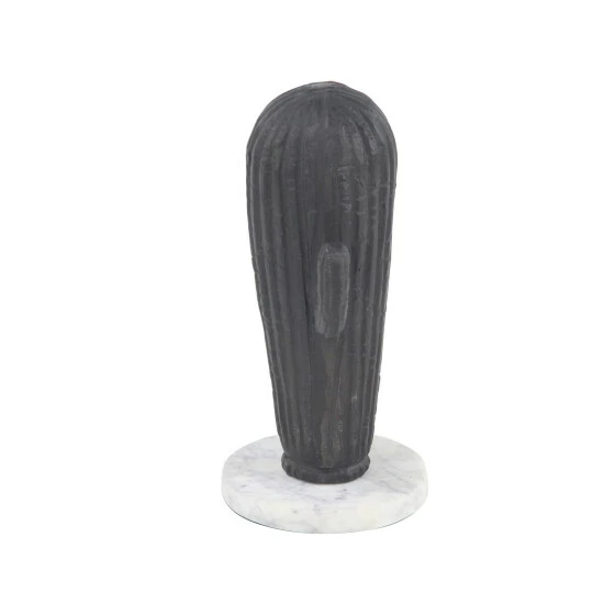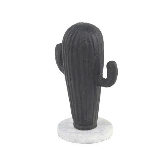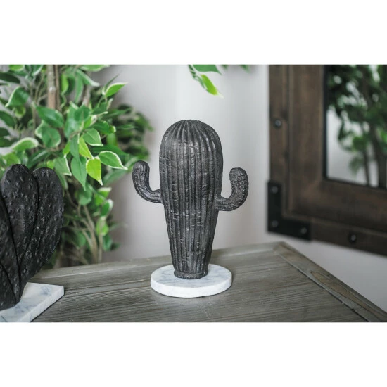 - 11″ x 8″ Rustic big baby cactus sculpture, features a black finish cactus with two arms, mounted on a solid base, made of aluminum and stone