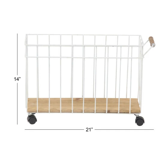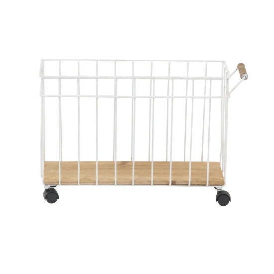 Organize your folders or important documents the rustic way by using this lovely basket from Studio 350. The product is made from high-quality iron and Chinese fir wood materials, ensuring durability and longevity. Designed with four caster wheels and a handle, this white and brown-finished basket is convenient to carry and move around. Purchase this storage basket now for less stress and clutter!