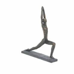- Sculpture set features 2 human figures doing yoga positions on a long and narrow rectangular base
