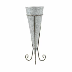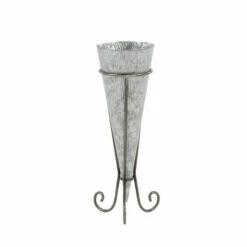 Organize your plants in a stylish way using this metal plant stand. This set consists of three plant stand in various sizes, providing additional storage space for your ornate florals. It is crafted from 100% iron, that ensures long-lasting use. It features scroll-designed stand for stable balance and support. The galvanized silver finishing brings out the minimalist look of this plant stand set. You can display this individually or by set for a more cohesive look. Aside from its functional use, this plant stand set also makes a striking decor in your garden or patio. Purchase this piece now for an elegant look to your garden!