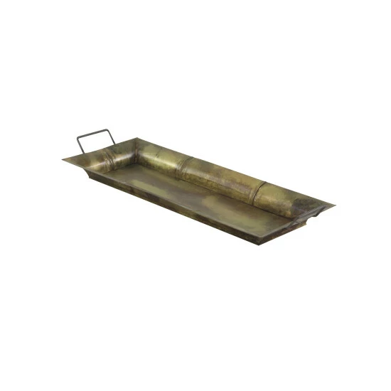 Display these rectangular metal trays in your farmhouse-themed kitchen settings for an added rustic look to your interior. Crafted from 100% iron material, these metal trays are sure to last a lifetime. It is designed with curved rims to hold your items in place while the iron handles provide handling convenience. The distressed gold finish brings out the minimalist yet stylish look of these metal trays. Use it for serving food or simply place your dry goods or decorative fillers in it. Purchase this set now at a price you can surely afford!