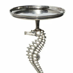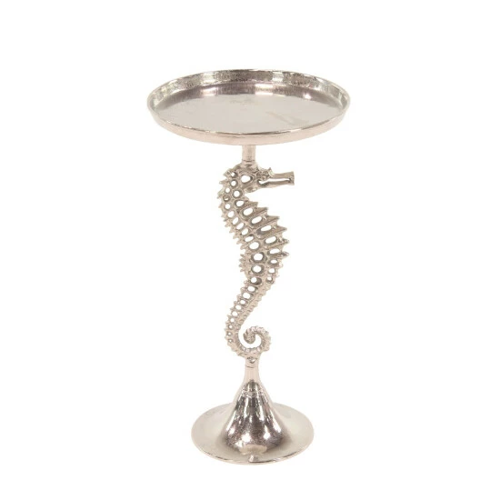 - This seahorse accent table features a silver finish that gives glamour to your traditional-inspired home