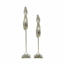 - Bird sculpture set featuring a shiny silver finish that suits any interior especially eclectic