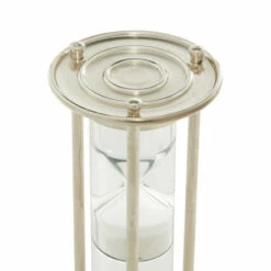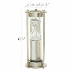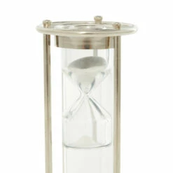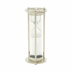 It’s time to change how you keep track of time! Crafted in India, the aluminum frame features two rounded caps and three smooth pillars. The central tube contains water as well as an internal bulb filled with sand. When you flip the timer over, the internal bulb begins to rise in the tube, even as the sand slowly trickles down. This timer serves as elegant decor for your home office desk, bedroom nightstand, or living room mantel. This item ships in one carton.