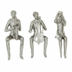 Bring playfulness and make a statement with this trio of musician figurines. Made with ceramic, this decorative piece boasts a smooth texture finish and playful character. Flaunt your passion for music with this set of ceramic musicians or gift. Showcase on tables, shelves, or gift to a passionate musician. The shiny finish of this musician set will definitely add some spice on to any corner surface you will add them to thanks to their sitting position design. Wipe clean with a dry cloth. These ceramic figurines of musicians are apt for side table and shelf decorating. Suitable for indoor use only. Traditional style. This item comes shipped in one carton. This items comes as a set of 3.