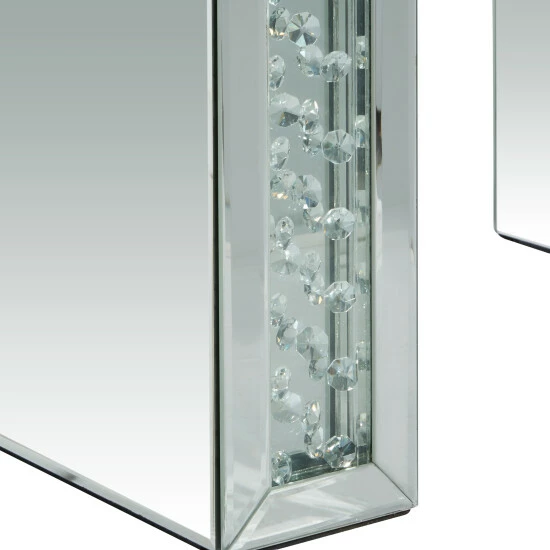 - Rectangle mirror wood stool showcases an accent crystal embellishment with two straight rectangle base