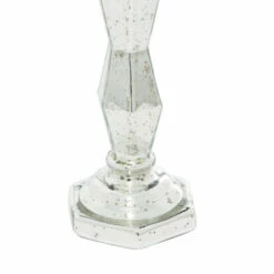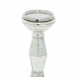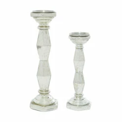 No matter where you place them in your home, these candle holders are hard to miss. They feature a tall, slim construction paired with a reflective design. When you want to invoke a dazzling, vintage feel throughout a room, these candlestick holders are a smart addition. Each holder has a 5″ base, making it easy to position them on small end tables or the corners of a desk. Each pillar candle holder can accommodate 1 votive or pillar candle. This item comes shipped in 1 carton. Suitable for indoor use only. Made in India. This set includes 2 candle holder. Glam Design.