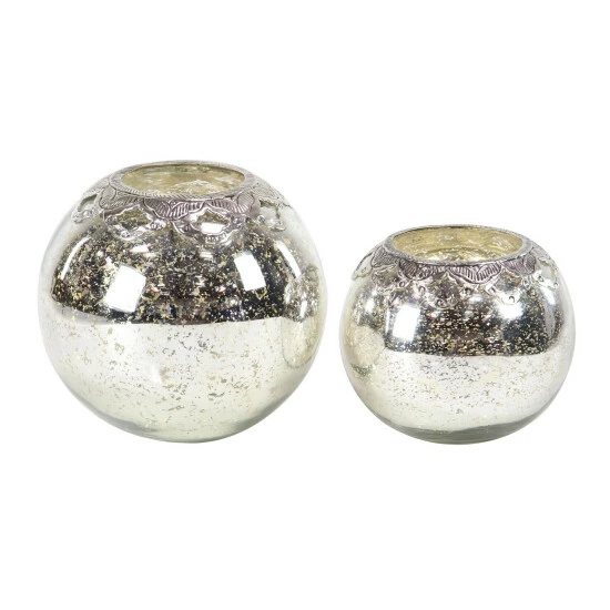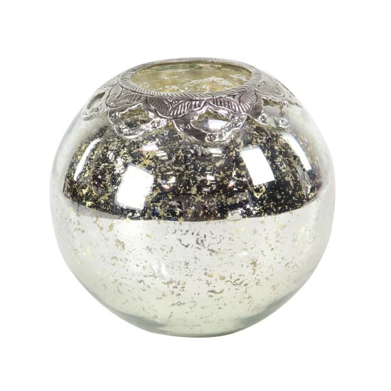 Add an eye-catching accent to your home ensemble with these stunning glass and iron candle holders from Studio 350. Each piece features a round body frame, a round rim with ornate details, and a round opening. Flaunting a captivating silver finish with gold spatters, these candle holders are sure to radiate a touch of modern glamour to any room or space. Fill them with your favorite candle, twinkle lights, or other decorative items to create an artful statement.