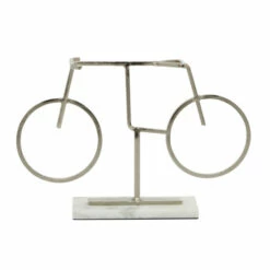 - This metal bicycle sculpture has a silver finish for contemporary style