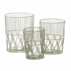 This 3-in-1 metal basket set showcases a traditional woven look that goes well with contemporary concepts. It takes all the key features—holes, weaves, and handles—but using iron in their built. Use them as towel, blanket, Decor, fruit, and clothing holders. They can also function as laundry baskets, game consoles organizers, crafts racks, and umbrella, scarf, hat, and mitten holders at an entrance. This item comes shipped in one carton. Metal baskets have holes and handles. Suitable for indoor use only. Made in India. This is a three-piece metal basket set. Contemporary design.