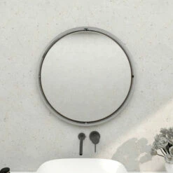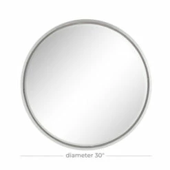 - Extra large round wall mirror measures 30″L x 1.25″W x 30″H and weighs 15 lbs